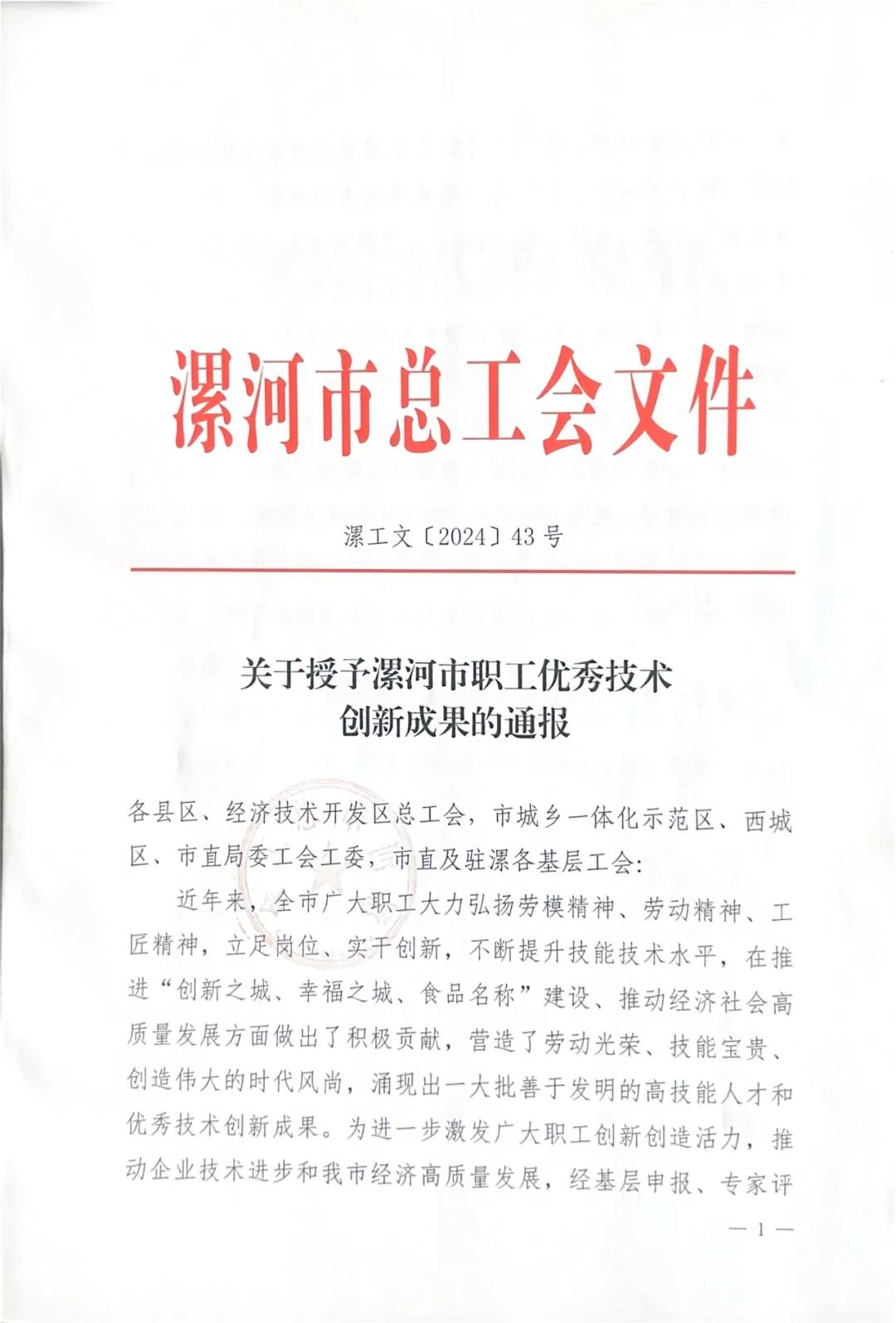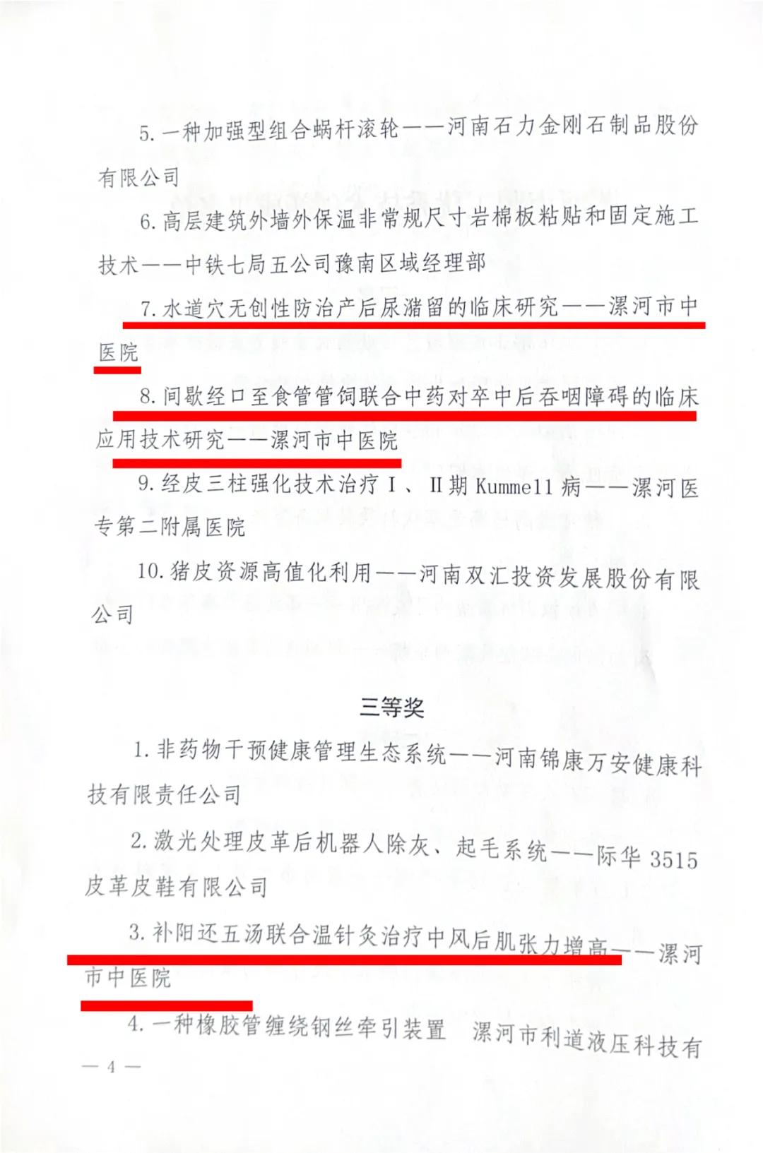 河市中醫(yī)院3個項目獲得漯河市職工優(yōu)秀技術(shù)創(chuàng)新成果獎項
