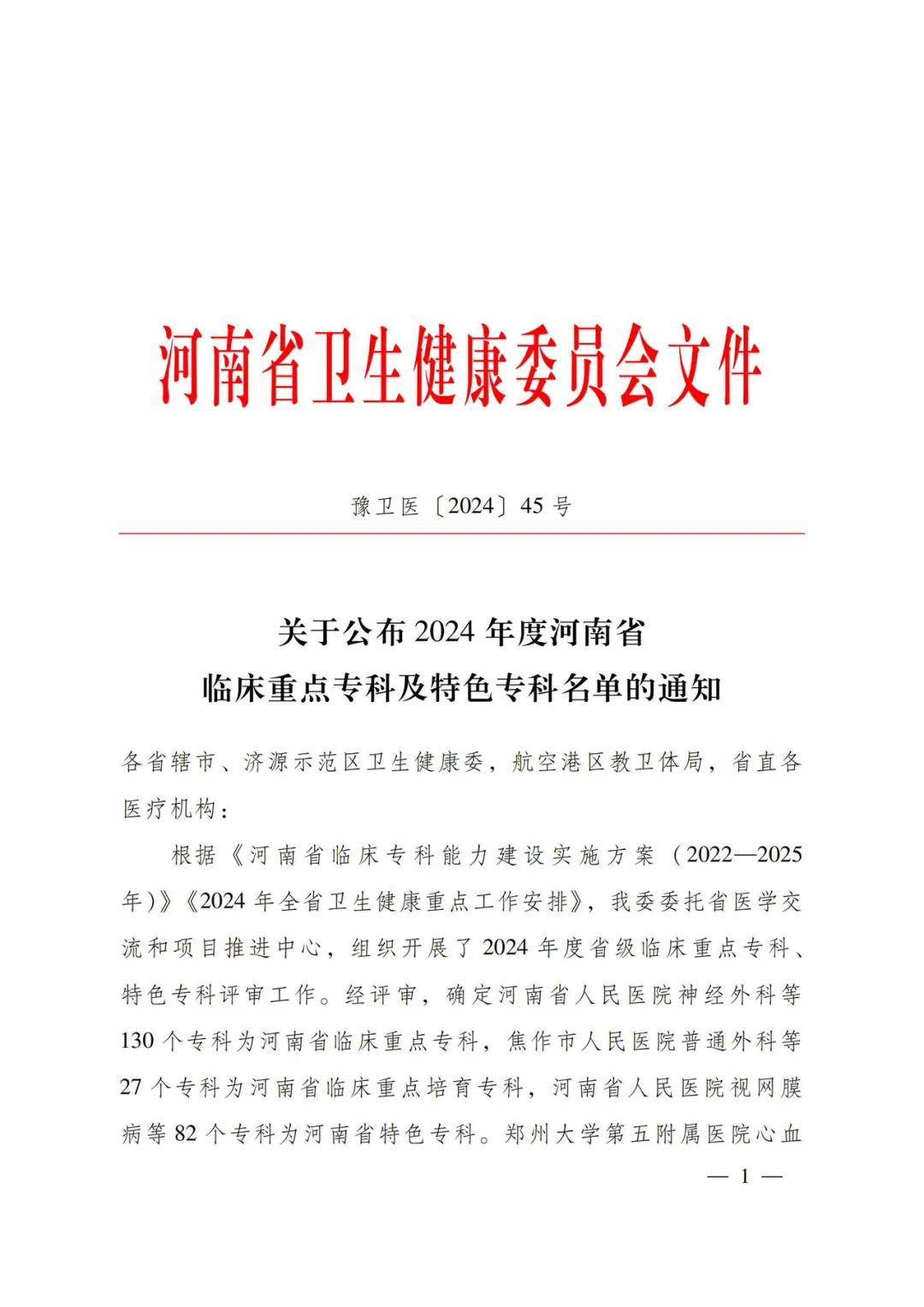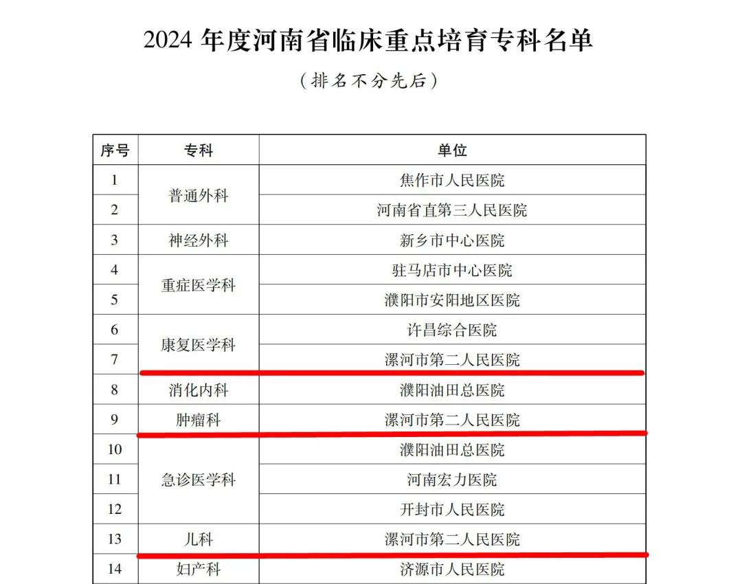 12月24日,河南省衛(wèi)生健康委下發(fā)了《關(guān)于公布2024年度河南省臨床重點(diǎn)專科及特色??泼麊蔚耐ㄖ罚ㄔバl(wèi)醫(yī)〔2024〕45號(hào))。市二院兒科、腫瘤科(腫瘤放療科、腫瘤內(nèi)科)、康復(fù)醫(yī)學(xué)科成功通過(guò)評(píng)審,被確定為河南省臨床重點(diǎn)培育??啤?/div>
