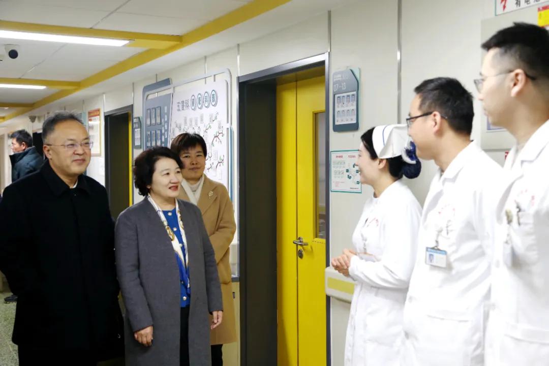 隨后張祎捷一行來到住院病區(qū),對醫(yī)院取得的成績給予了充分肯定,鼓勵大家在新的一年里繼續(xù)努力,不斷提高醫(yī)療技術(shù)水平,為患者提供更加優(yōu)質(zhì)的醫(yī)療服務(wù)。同時,領(lǐng)導(dǎo)們還關(guān)心地詢問了醫(yī)護(hù)人員的工作和生活情況,希望他們在工作之余能夠照顧好自己和家人,并送上節(jié)日的慰問品。
