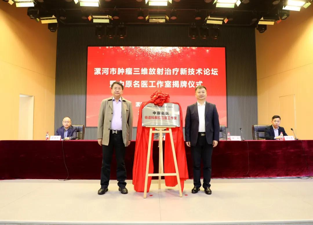 2023年11月,漯河市首家楊道科教授中原名醫(yī)工作室落戶市二院。旨在依托鄭大一附院雄厚的醫(yī)療技術(shù)和團隊力量,通過名醫(yī)專家面對面?zhèn)鲙蛶?、手把手帶專科、心連心救病人,攜手提升促發(fā)展,并指導(dǎo)學(xué)科建設(shè)、醫(yī)療技術(shù)、人才培養(yǎng)等工作,全力助推市二院腫瘤放療及相關(guān)專業(yè)??漆t(yī)療技術(shù)、服務(wù)水平不斷提升,讓漯河百姓在“家門口”就能享受到國家級名醫(yī)專家的診療服務(wù)。