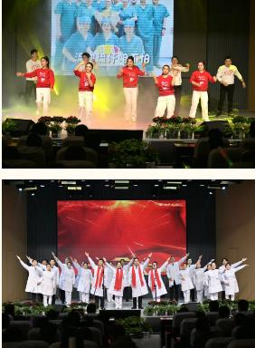 院領(lǐng)導(dǎo)班子也全員參與,登上舞臺表演了歌曲、詩朗誦、太極拳、相聲、三句半等節(jié)目,他們?nèi)橥度氲谋硌?,展現(xiàn)出了十足的活力,拉近了與職工之間的距離,讓大家感受到了醫(yī)院這個(gè)大家庭的溫暖與團(tuán)結(jié),他們的登場也瞬間點(diǎn)燃了現(xiàn)場的氣氛,將聯(lián)歡會的氛圍推向了高潮。