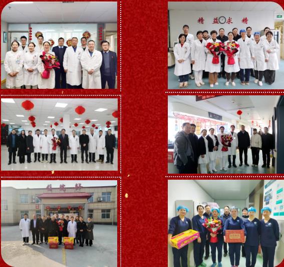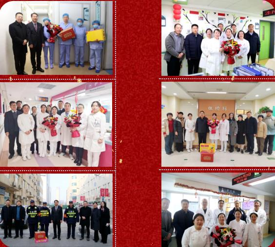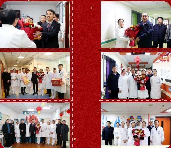 1月29日正值乙巳蛇年大年初一,漯河醫(yī)專二附院(漯河市骨科醫(yī)院、漯河市立醫(yī)院)黨委書(shū)記柴運(yùn)洪、院長(zhǎng)王齊超及院領(lǐng)導(dǎo)吳廣良、曹鵬克、鄭建新、劉國(guó)鋒、吳威等分別帶領(lǐng)各職能科室負(fù)責(zé)人深入各病區(qū)、各科室、陰陽(yáng)趙分院等處看望慰問(wèn)節(jié)日期間依然堅(jiān)守崗位的廣大干部職工,為每一位堅(jiān)守崗位的醫(yī)護(hù)人員和工作人員送上新春的美好祝福與誠(chéng)摯的慰問(wèn)。