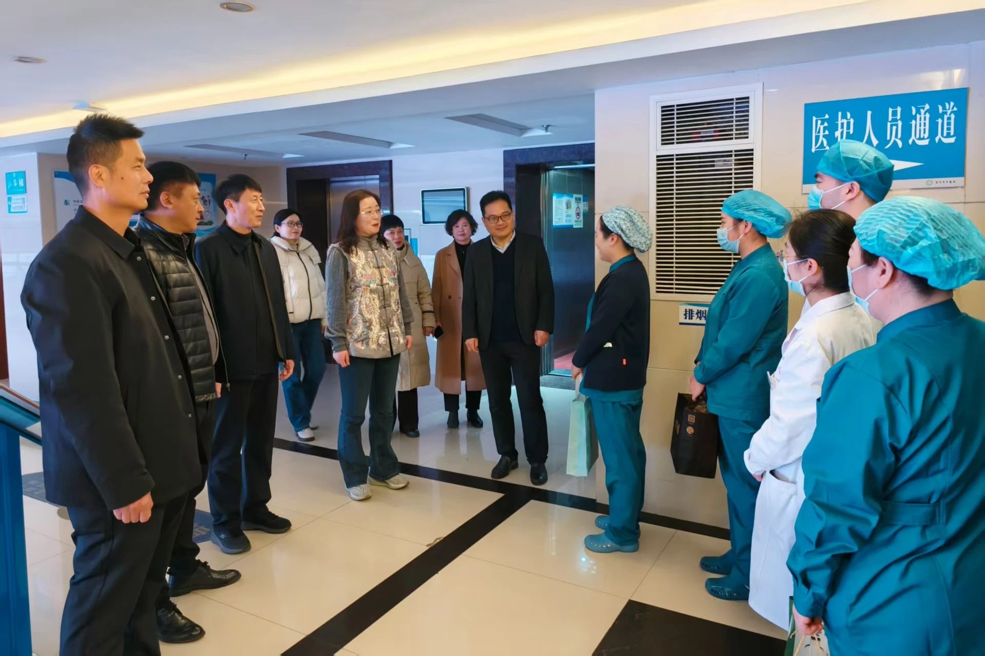 “新年好,大家辛苦了!”“給大家拜年了!”院領(lǐng)導(dǎo)一行先后到臨床病區(qū)、門急診、重癥監(jiān)護(hù)室、醫(yī)技檢驗(yàn)、治未病·健康管理中心、針灸科、康復(fù)科等地慰問。為大家送去暖暖的新春祝福,與值班人員親切交談,肯定、感謝大家過去一年對醫(yī)院發(fā)展作出的貢獻(xiàn)與辛勤付出,對大家堅守在崗、無私奉獻(xiàn)的精神表示崇高的敬意,并叮囑大家工作務(wù)必認(rèn)真、負(fù)責(zé),確保春節(jié)期間患者得到專業(yè)、舒心的就診服務(wù)。院領(lǐng)導(dǎo)們還深入病房,為在院診治患者送上新春的問候和祝福,關(guān)心他們的身體情況,祝愿他們新年快樂,身體早日康復(fù)!