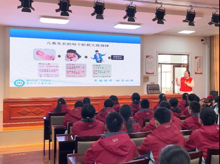 活動(dòng)現(xiàn)場(chǎng),市二院兒童保健科副主任李錦璐就《生活中長(zhǎng)高的秘訣》,特別強(qiáng)調(diào)了身體健康的重要性,詳細(xì)介紹了兒童身高發(fā)育的成因、危害以及預(yù)防措施。引導(dǎo)同學(xué)們樹立正確的飲食觀念,鼓勵(lì)大家多參與戶外活動(dòng),保持健康的生活方式;副主任醫(yī)師郭鳳仙圍繞《青少年心理健康》針對(duì)心理行為異常問題,以通俗易懂的語言幫助同學(xué)們正確認(rèn)識(shí)青春期可能出現(xiàn)的心理變化,引導(dǎo)大家學(xué)會(huì)積極應(yīng)對(duì)學(xué)習(xí)和生活中的壓力與挑戰(zhàn),保持樂觀向上的心態(tài)。