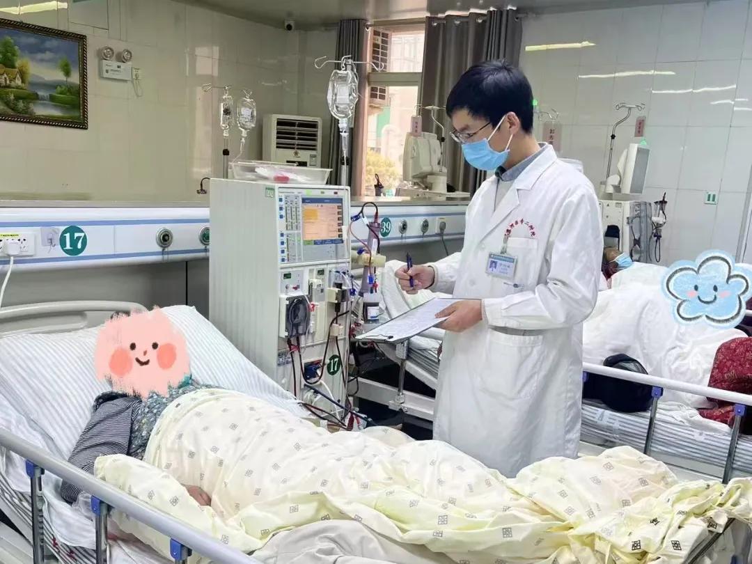 在日常工作中,賈醫(yī)生對(duì)待每一位患者都認(rèn)真負(fù)責(zé)。透析治療流程復(fù)雜,他卻一絲不茍。從仔細(xì)查看患者狀況、熟練進(jìn)行上機(jī)操作,到根據(jù)每位患者的身體狀況制定個(gè)性化的透析方案,每一個(gè)環(huán)節(jié)都凝聚著他的專業(yè)與專注。透析時(shí)間漫長(zhǎng),分上午、下午、晚上進(jìn)行,每次長(zhǎng)達(dá) 4 小時(shí),賈醫(yī)生始終堅(jiān)守在透析室,時(shí)刻關(guān)注患者情況,耐心解答患者的疑問,及時(shí)調(diào)整治療方案。他的專業(yè)和負(fù)責(zé),不僅讓患者安心,也吸引了眾多患者家屬前來找他看病。