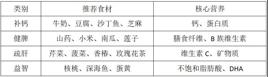 推薦食物:牛奶及奶制品(每日500ml牛奶可滿足60%鈣需求)、豆腐、小魚干、海帶等。