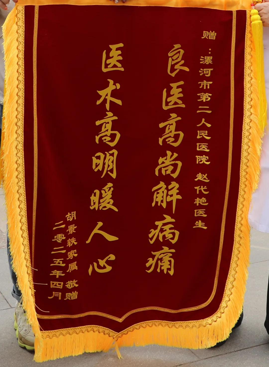 一名家住駐馬店市西平縣的患兒家長帶著孩子專程來到活動現(xiàn)場,找到市二院小兒心血管神經(jīng)血液科主任醫(yī)師趙代艷,送上一面寫有“良醫(yī)高尚解病痛 醫(yī)術(shù)高明暖人心”的錦旗,以表達全家的感激之情。“近兩個月,每周我都帶孩子前往市二院復(fù)查,趙代艷醫(yī)生細致入微的關(guān)懷與耐心,都令我深深感動。每一次復(fù)查,她都不厭其煩地叮囑各項注意事項,從日常飲食到生活作息,面面俱到。”孩子家長感慨地說道。