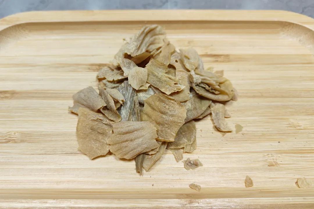 2.炒雞內(nèi)金,取大小分檔的凈雞內(nèi)金,置炒制容器內(nèi),用中火加熱,炒至鼓起卷曲、酥脆、表面黃白色時,取出,放涼。