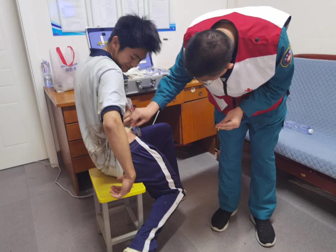 運(yùn)動(dòng)會(huì)期間,志愿者穿梭于賽場(chǎng)的各個(gè)角落,化身“移動(dòng)急救站”,時(shí)刻關(guān)注著運(yùn)動(dòng)員的狀態(tài)。一旦接到求助,他們迅速到達(dá)現(xiàn)場(chǎng),對(duì)傷員進(jìn)行初步診斷和處理,為擦傷運(yùn)動(dòng)員細(xì)心消毒包扎,為身體不適學(xué)生及時(shí)測(cè)量血壓、補(bǔ)充電解質(zhì)飲品。面對(duì)突發(fā)扭傷學(xué)生,志愿者第一時(shí)間進(jìn)行專(zhuān)業(yè)評(píng)估與固定處理,贏得師生一致好評(píng)。