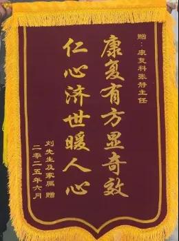 與此同時,科室還收到一面印有“康復有方顯奇效,仁心濟世暖人心”字樣的錦旗。在患病期間,患者飽受腰痛、下肢麻木等癥狀折磨,嚴重影響日常生活。來到康復科后,科室負責人張靜帶領(lǐng)科室團隊根據(jù)其病情制定個性化針灸治療方案,通過精準取穴、規(guī)范施針,配合專業(yè)康復指導,逐步減輕患者病痛,助其恢復正常生活。患者為表感激,特贈錦旗,錦旗上的話語是對科室治療效果的高度認可。