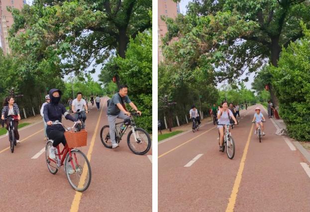 本次活動以“喜迎七一”為主題,將愛黨愛國教育、團(tuán)隊建設(shè)與健康運(yùn)動有機(jī)結(jié)合。青年朋友們精神飽滿地踏上單車,沿著精心規(guī)劃的騎行路線出發(fā)。騎行隊伍宛如一條流動的青春彩帶,穿梭于沙澧河畔的綠樹碧水之間。大家一路歡聲笑語,洋溢著青春的活力與朝氣,以實(shí)際行動踐行低碳環(huán)保理念,成為景區(qū)一道亮麗的風(fēng)景線。