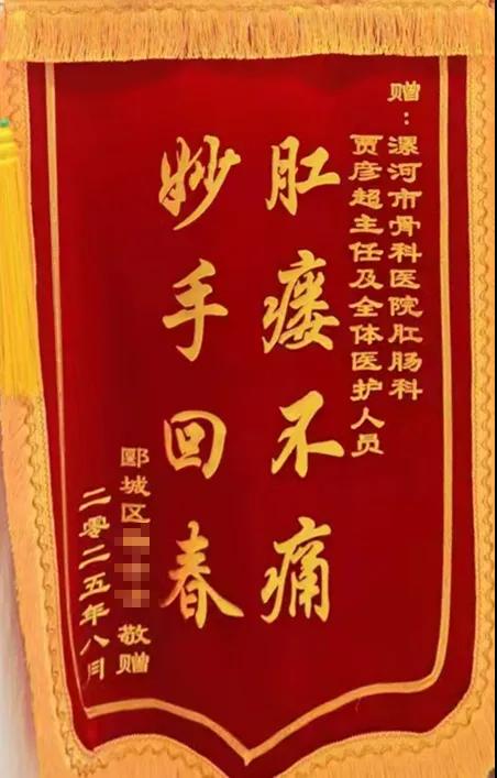 近日,在漯河醫(yī)專二附院(漯河市骨科醫(yī)院、漯河市立醫(yī)院)肛腸科,患者將一面寫有“肛瘺不痛,妙手回春”的錦旗送到了賈彥超主任手中,以此表達(dá)她對(duì)賈主任及其醫(yī)療團(tuán)隊(duì)精湛醫(yī)術(shù)和貼心關(guān)懷的誠摯感謝。這面錦旗背后,是一段患者重獲健康、擺脫病痛折磨的暖心歷程。