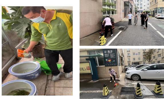 對發(fā)現和存在的隱患問題,醫(yī)院迅速開展行動,啟動系統化的外圍環(huán)境清積水專項行動??倓湛茽款^部署保潔團隊嚴格按照網格化分工,深度清潔垃圾桶周邊的頑固積水污漬,同步清空空調外機接水盤蓄水,及時清理各類殘留積水,確保每一處積水隱患點進行清除。