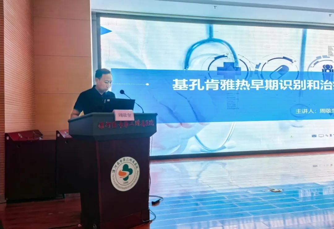 本次培訓邀請了呼吸內科周敬奎主任進行授課,內容涵蓋基孔肯雅熱和登革熱的流行病學特征、臨床表現(xiàn)、診斷標準、治療原則以及防控措施等方面。周主任結合實際案例,對兩種疾病的鑒別診斷進行了詳細講解。