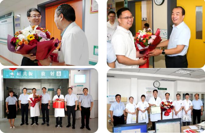 每到一個(gè)科室,醫(yī)院領(lǐng)導(dǎo)都將精心準(zhǔn)備的鮮花、香甜的蛋糕以及貼心的慰問品送到每一位醫(yī)師手中。一句句 “辛苦了”“注意休息”,讓醫(yī)師們深切感受到醫(yī)院的關(guān)懷與支持。院領(lǐng)導(dǎo)們高度肯定并贊揚(yáng)了醫(yī)師們?cè)谂R床工作中的辛勤付出與無私奉獻(xiàn)。他們強(qiáng)調(diào),醫(yī)務(wù)工作者是社會(huì)中最崇高的職業(yè)之一,醫(yī)師們憑借自己的專業(yè)智慧和汗水,日夜守護(hù)著患者的生命健康,是生命戰(zhàn)場上的 “最美逆行者”。