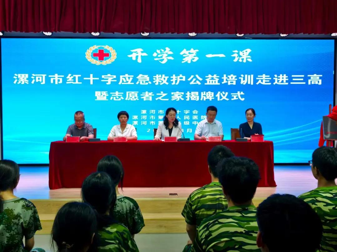 8月21日上午,漯河市紅十字應(yīng)急救護(hù)公益培訓(xùn)進(jìn)校園暨志愿者之家揭牌儀式在市第三高級(jí)中學(xué)舉行,市紅十字會(huì)黨組書記、常務(wù)副會(huì)長(zhǎng)孫潁華,市教育局黨組成員、副局長(zhǎng)郭俊偉,市二院黨委副書記、院長(zhǎng)胡海英,市紅十字會(huì)黨組成員、副會(huì)長(zhǎng)李世杰,市二院紅十字志愿服務(wù)隊(duì)代表、漯河三高紅十字應(yīng)急救護(hù)社團(tuán)師生代表等參加本次活動(dòng)。