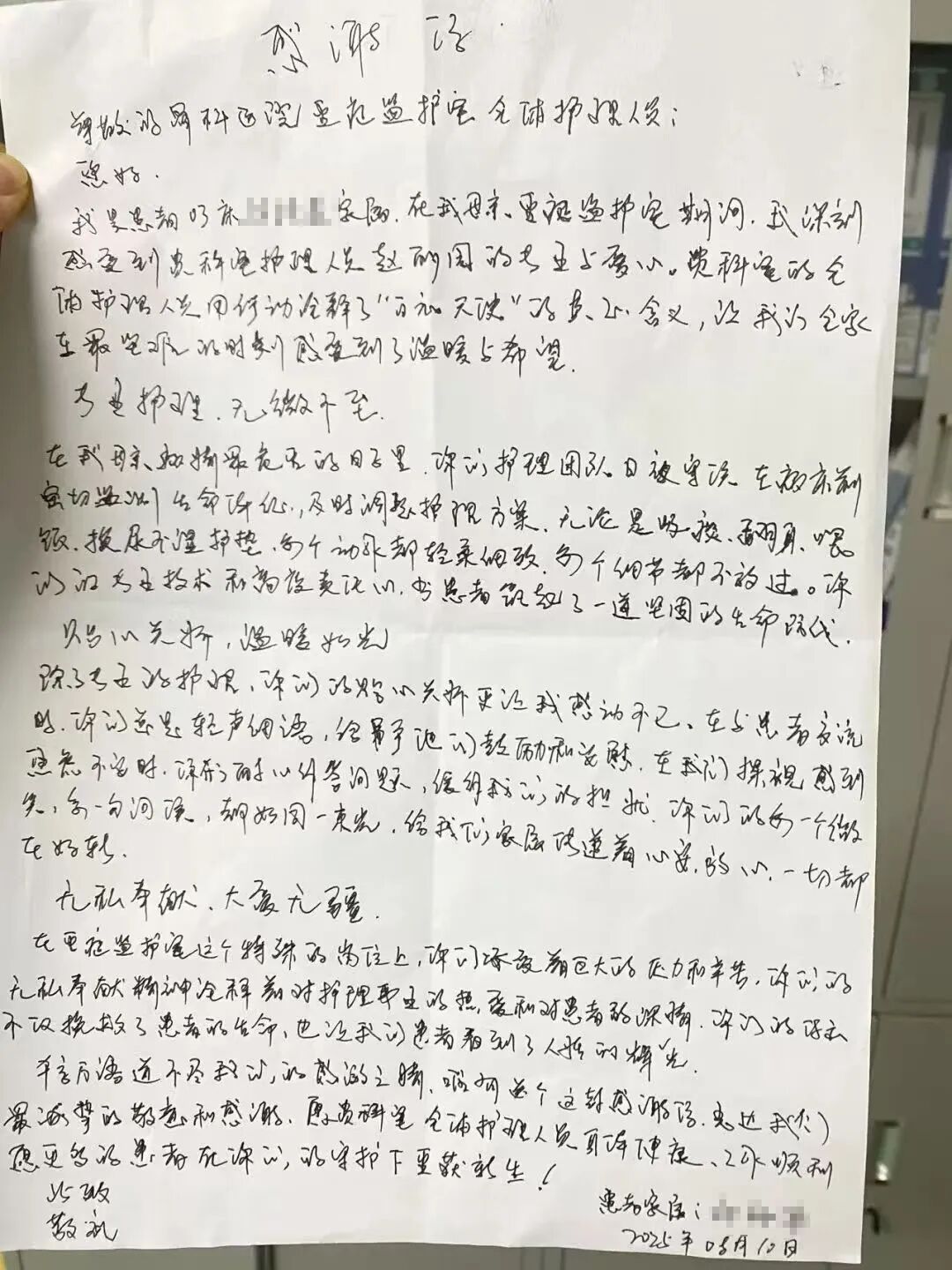 重獲新生的喜悅和對(duì)救命之恩的感激,讓患者一家決定用最傳統(tǒng)也最莊重的方式表達(dá)謝意——贈(zèng)送錦旗。在莊重的贈(zèng)送儀式上,當(dāng)患者家屬親手展開(kāi)那面凝聚著全家心意的錦旗時(shí),他再也抑制不住內(nèi)心的情感:“今天,我母親能康復(fù)出院,是重癥醫(yī)學(xué)科全體醫(yī)護(hù)人員用高超的醫(yī)術(shù)、無(wú)盡的耐心和博大的愛(ài)心創(chuàng)造的奇跡!回想母親搶救時(shí)那段日子,我因?yàn)樽约旱慕箲],對(duì)醫(yī)生護(hù)士說(shuō)了過(guò)激的話,今天,我要鄭重地向你們道歉!感謝你們不僅救了我母親的命,更在我最失態(tài)的時(shí)候,用包容和理解守護(hù)了我們家屬的心。” 他深深的鞠躬,讓在場(chǎng)不少醫(yī)護(hù)人員也紅了眼眶。