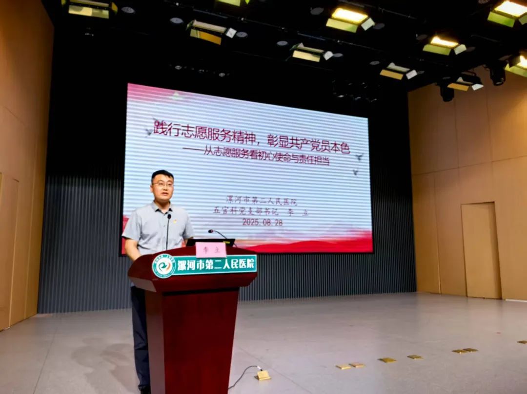 市二院五官科黨支部書記李立以《踐行志愿服務(wù)精神,彰顯共產(chǎn)黨員本色——從志愿服務(wù)看初心使命與責(zé)任擔(dān)當(dāng)》為題,從志愿服務(wù)是黨員必修課、志愿服務(wù)中的黨性密碼、黨員志愿服務(wù)實(shí)踐路徑、志愿服務(wù)是黨性修養(yǎng)實(shí)踐等4個(gè)方面,結(jié)合醫(yī)院大量的志愿服務(wù)實(shí)例,講述了市二院黨委如何通過“一支部一品牌”活動(dòng)的開展來發(fā)揮黨支部的戰(zhàn)斗堡壘作用和黨員的先鋒模范作用。