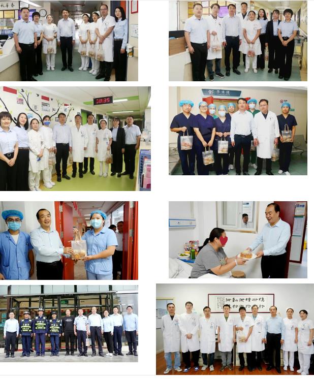 所到之處,暖意濃濃。每到一處,院領導都與大家親切交談,將承載著關心和祝福的慰問品送到大家手中,詳細詢問假期排班情況、保障措施落實情況,對大家堅守崗位、無私奉獻的精神給予高度贊揚,對職工家屬們的理解和支持表示感謝。同時,叮囑大家在全力保障醫(yī)療工作的同時,要注意休息。在病房里,院領導將精心準備的月餅送到住院患者及家屬手中,詳細詢問他們的恢復情況,并為他們送上節(jié)日的祝福。