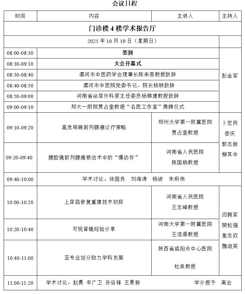 【學(xué)術(shù)預(yù)告】10月19日,漯河市中醫(yī)藥學(xué)會中西醫(yī)結(jié)合泌尿外科2025年學(xué)術(shù)年會暨泌尿系結(jié)石中西醫(yī)結(jié)合治療新進(jìn)展研討班