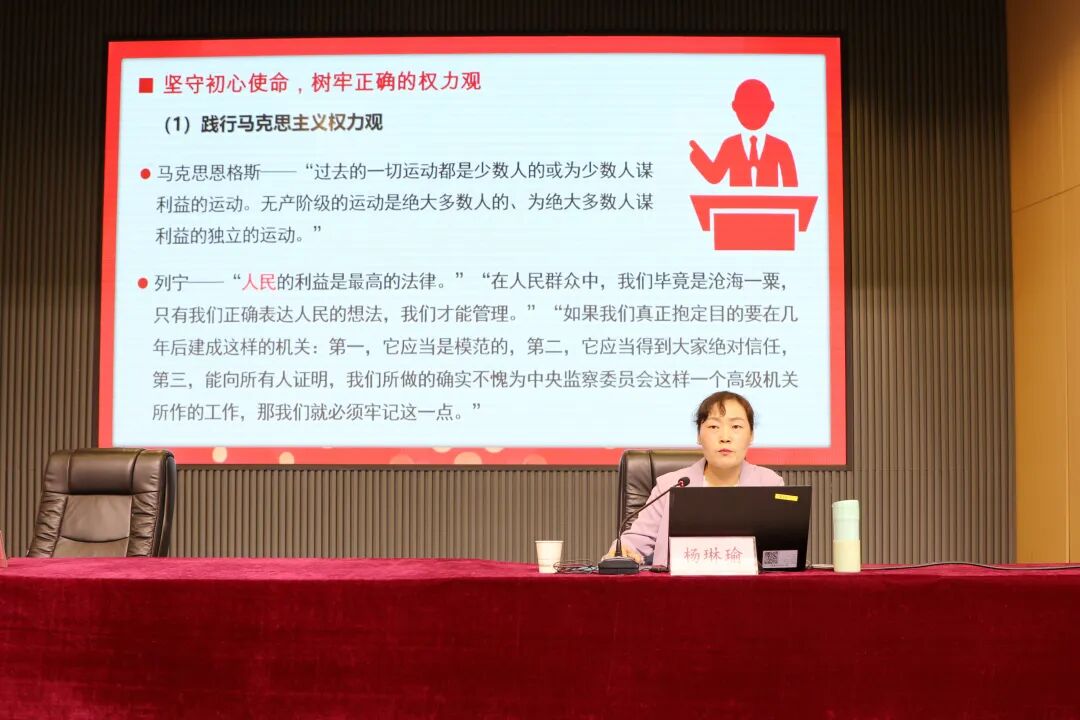 楊琳瑜以《鍥而不舍落實(shí)中央八項(xiàng)規(guī)定精神 牢固樹(shù)立正確的權(quán)力觀政績(jī)觀事業(yè)觀》為題,從堅(jiān)守初心使命,樹(shù)牢正確的權(quán)力觀;堅(jiān)持為民造福,樹(shù)牢正確的政績(jī)觀;堅(jiān)定實(shí)干擔(dān)當(dāng),樹(shù)牢正確的事業(yè)觀三個(gè)方面,為與會(huì)人員帶來(lái)了一場(chǎng)既有理論高度又有實(shí)踐指導(dǎo)意義的專(zhuān)題輔導(dǎo)。