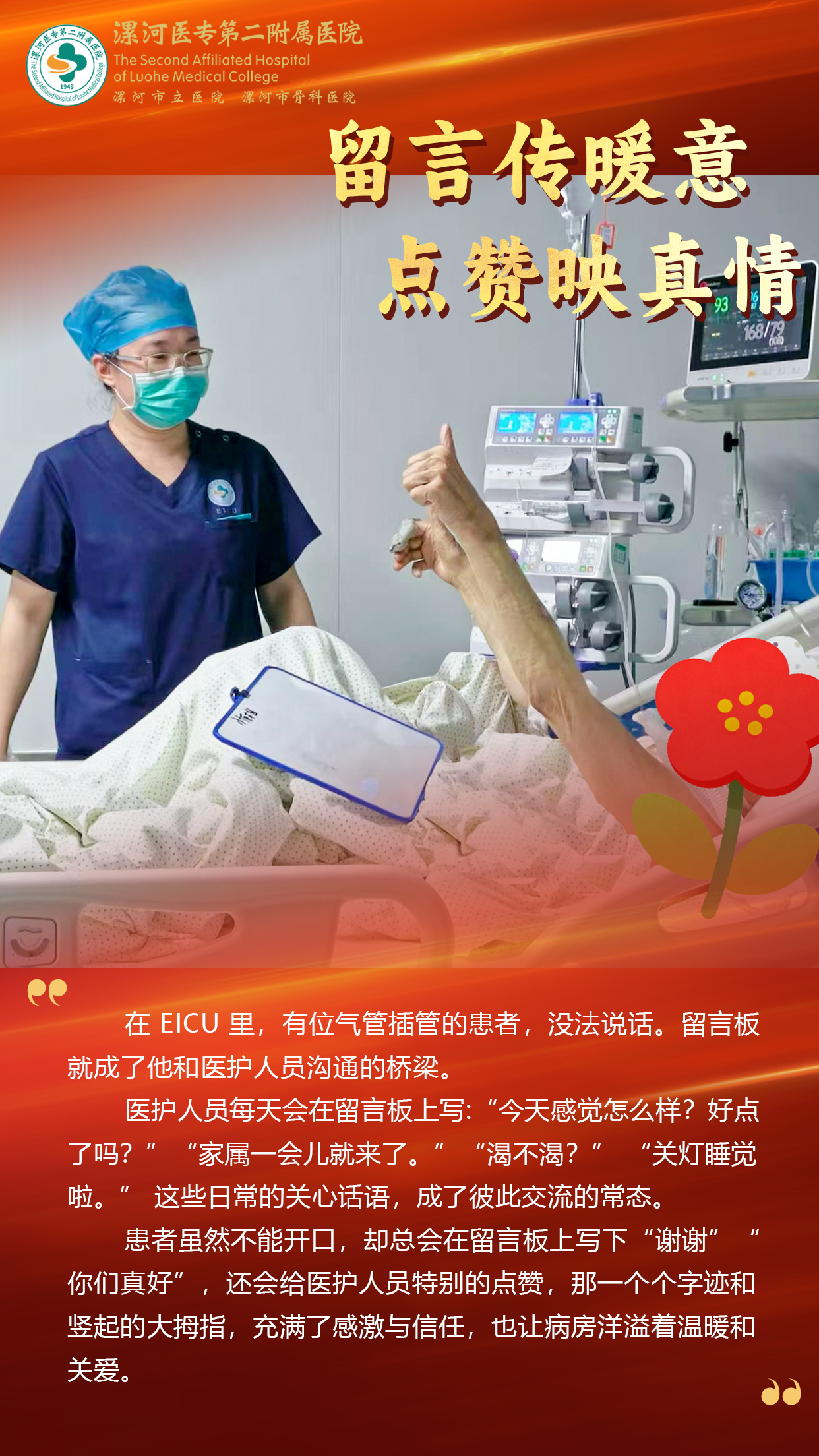 漯河市骨科醫(yī)院:最美“醫(yī)”瞬間 留言傳暖意 點(diǎn)贊映真情