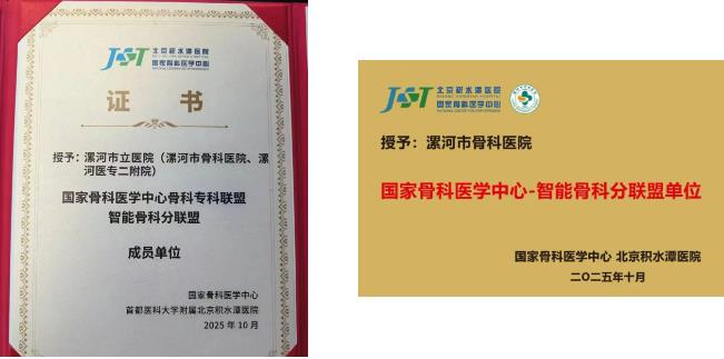 10月18日,國(guó)家骨科醫(yī)學(xué)中心骨科??坡?lián)盟智能骨科分聯(lián)盟授牌儀式在北京積水潭醫(yī)院舉辦,漯河醫(yī)專二附院(漯河市骨科醫(yī)院、漯河市立醫(yī)院)憑借在骨科領(lǐng)域的卓越實(shí)力和創(chuàng)新探索,成為智能骨科分聯(lián)盟成員單位。