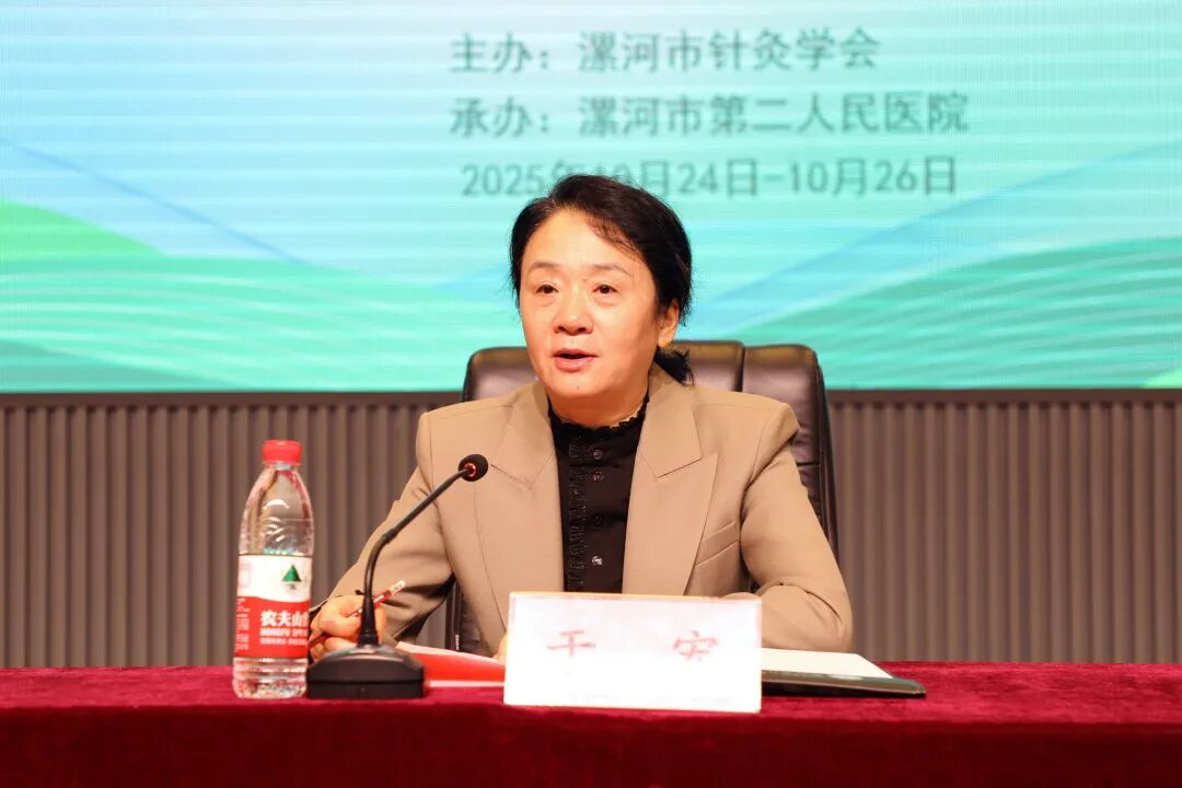 2025年10月24日——10月26日,由漯河市針灸學(xué)會(huì)主辦,漯河市第二人民醫(yī)院承辦的省級(jí)繼續(xù)醫(yī)學(xué)教育項(xiàng)目“頸椎退行性疾病的中西醫(yī)研究進(jìn)展與臨床應(yīng)用培訓(xùn)班”在市二院成功舉辦。市衛(wèi)健委副主任于宏,市二院黨委副書(shū)記、院長(zhǎng)胡海英,市針灸學(xué)會(huì)會(huì)長(zhǎng)朱青霞出席開(kāi)幕式,來(lái)自漯河及周邊地區(qū)針灸專業(yè)同道400余人參加會(huì)議。會(huì)議由副院長(zhǎng)張曉東主持。