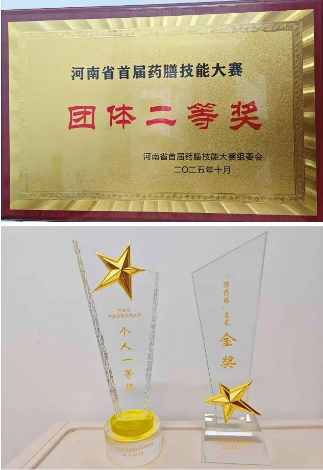 2025 年10月22日至24日,河南省首屆藥膳技能大賽在南陽市醫(yī)圣文化園隆重舉辦。在這場高規(guī)格賽事中,漯河市中醫(yī)院參賽隊(duì)伍憑借深厚的中醫(yī)藥底蘊(yùn)與精湛的烹飪技藝嶄露頭角,取得優(yōu)異成績,摘得數(shù)座獎(jiǎng)杯,成為賽事中的最亮眼存在。藥學(xué)部白冰制作的金湯萸杞護(hù)肝盞憑借獨(dú)特的創(chuàng)意及絕佳口感與科學(xué)的養(yǎng)生功效,脫穎而出,榮獲 “豫藥膳名菜” 金獎(jiǎng)第一名,成為本次大賽的焦點(diǎn)之作。
