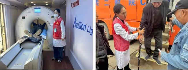 活動現(xiàn)場,漯河醫(yī)專二附院專家團隊有序地為三家店居民免費做CT檢查、測量血壓、體格檢查、用藥指導、健康咨詢、疾病診斷等。面對前來就診的患者,專家志愿者細致講解多發(fā)病的保健常識,認真了解每位咨詢者的疾病癥狀,清晰回應各類健康疑問;依據(jù)實際病情提供個性化診療建議與用藥指導,幫助大家及時知曉健康動態(tài),實現(xiàn)疾病早發(fā)現(xiàn)、早防范、早醫(yī)治,促進養(yǎng)成健康生活模式。