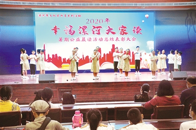 8月22日上午9時(shí)許,在許慎文化園會(huì)議大廳里,孩子們誦讀經(jīng)典的聲音此起彼伏。當(dāng)天上午,為期42天的“幸福漯河大家讀”——2020暑期公益晨讀活動(dòng)正式落下帷幕。今年晨讀活動(dòng)范圍更廣,人數(shù)更多,家長(zhǎng)和孩子踴躍參與,引來(lái)眾多關(guān)注的目光,也必將對(duì)少年兒童的成長(zhǎng)產(chǎn)生廣泛、深遠(yuǎn)、積極影響。