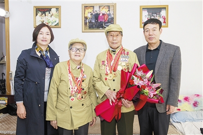 10月21日上午,抗美援朝老兵樊培源家,郾城區(qū)委黨校工作人員給他送來(lái)由中共中央、國(guó)務(wù)院、中央軍委頒發(fā)的“中國(guó)人民志愿軍抗美援朝出國(guó)作戰(zhàn)70周年”紀(jì)念章。接過(guò)紀(jì)念章,樊培源老人興奮不已,親自將紀(jì)念章別在衣服上,和大家一起合影留念。