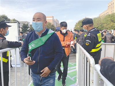 參展人員入場時接受體溫檢測。本報記者 韓亞黨 攝