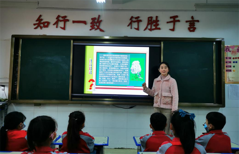 三是強(qiáng)化機(jī)制確保成效。讓學(xué)生了解白色污染的同時(shí),學(xué)校通過“小手拉大手”的形式,由學(xué)生把禁限塑相關(guān)知識(shí)帶給家庭成員,讓他們也積極參與到活動(dòng)中,為孩子們樹立起榜樣,通過家校聯(lián)合,起到更好的教育效果,實(shí)現(xiàn)“教育一個(gè)孩子、影響一個(gè)家庭、輻射整個(gè)社會(huì)”的宣傳教育目的。 此次活動(dòng),讓廣大師生、家長(zhǎng)充分了解了塑料污染治理的重要性和必要性,有利于廣泛凝聚共識(shí),營(yíng)造全社會(huì)共同參與的良好氛圍,為治理塑料污染,創(chuàng)建美麗家園作出更多的努力。(潘范學(xué) 王娟)