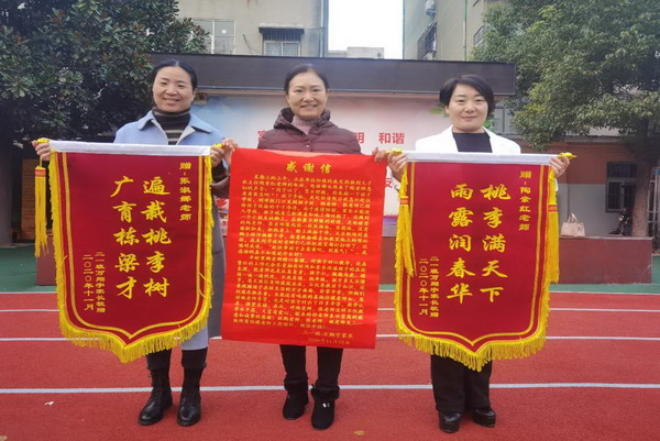 12月2日,外國語小學(xué)二一班家長走進(jìn)班級(jí),給班主任陶素紅和張淑娜老師贈(zèng)送錦旗和感謝信,班級(jí)不時(shí)傳來陣陣掌聲,為兩位老師喝彩點(diǎn)贊。