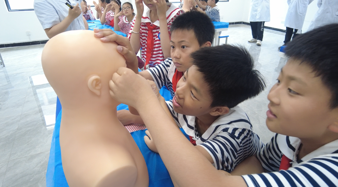 在模擬急救場景環(huán)節(jié),孩子們分組實(shí)踐,專注地模仿起胸外按壓、人工呼吸等急救動作。他們神情嚴(yán)肅,動作有模有樣,在實(shí)踐中領(lǐng)悟到了急救知識的重要性。