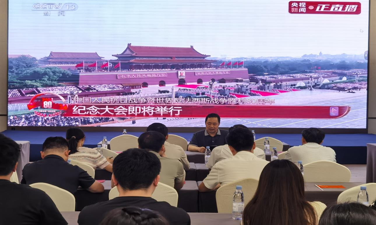 天安門廣場上,鐵流滾滾、戰(zhàn)機轟鳴;長安街兩側(cè),歡呼如潮、紅旗如海。9月3日上午,駐鄭聯(lián)絡(luò)中心全體黨員干部與駐鄭流動黨員代表齊聚海容酒店多功能廳,共同收聽收看紀(jì)念中國人民抗日戰(zhàn)爭暨世界反法西斯戰(zhàn)爭勝利80周年大會并觀看閱兵式,感受這一震撼人心的歷史時刻。