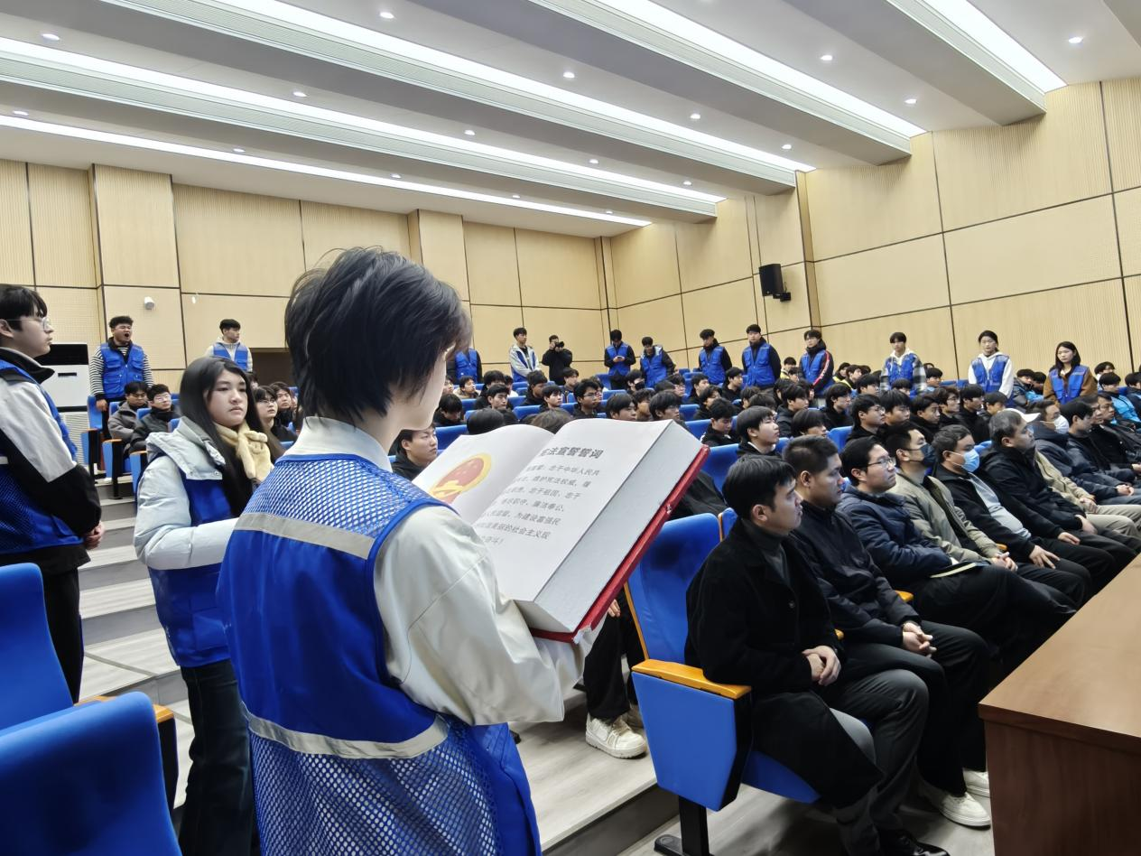 活動現(xiàn)場,漯河技師學(xué)院院長馮凱為郾城區(qū)人民檢察院檢察長胡君頒發(fā) “法治副校長” 聘書,副院長李君華為孟廟司法所所長高家斌頒發(fā) “法治輔導(dǎo)員” 聘書。現(xiàn)場莊嚴有序,師生們奏唱國歌,舉行 “迎憲法”“閱憲法” 傳遞儀式,共同誦讀憲法序言,以實際行動表達了對憲法權(quán)威的尊重和對法治信仰的堅守。