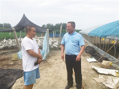 武莊村董喜臣家中5口人,妻子智力一級殘疾,二女兒智力二級殘疾,大女兒和小兒子正在上學(xué),家庭經(jīng)濟負擔重,生活壓力大,是楊鵬克長期關(guān)注的幫扶對象之一。楊鵬克連續(xù)半月開車送董喜臣去大劉鎮(zhèn)蔡莊村學(xué)習(xí)食用菌種植技術(shù),還幫他申請了5萬元無息貸款。如今,董喜臣種植食用菌、養(yǎng)殖雞鵝,一家人的生活明顯改善。