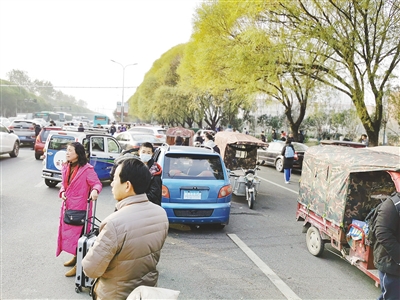 “我們學校每周五下午實行錯時放學,七年級是3點,八年級是3點20分,九年級是3點40分。”丁文周告訴記者,為了防止出現(xiàn)擁堵,學校還安排無教學任務的各處室工作人員兩點半開始在門口維持秩序。但是,三點半之后校門口依然會擁堵。目前,學校西側的107國道封閉,所有接孩子的車輛離開時只能向東走,加重了擁堵情況。