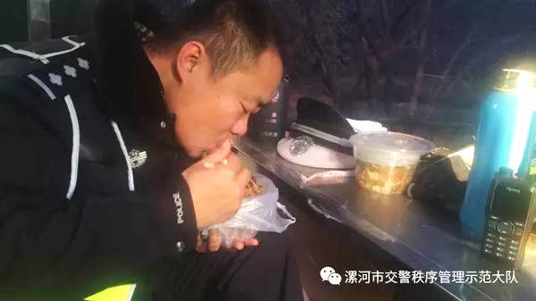 是護(hù)航食博會馬路牙子旁的簡單飲食,