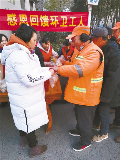 商家為環(huán)衛(wèi)工送免費(fèi)早餐