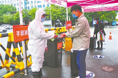 “媽媽再見,放心吧,我會(huì)照顧好自己的!”來(lái)自許昌的程佳寶同學(xué)到了學(xué)校門口后,和爸媽擁抱惜別,然后進(jìn)入測(cè)溫消毒防疫通道,進(jìn)行身份核驗(yàn)、體溫測(cè)量、行李消毒、更換口罩、手部消毒后,進(jìn)入闊別已久的校園。