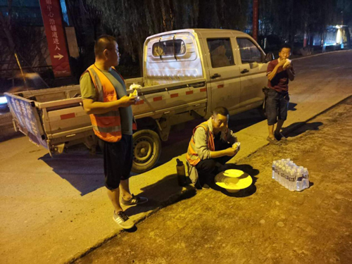 在9月8日早晨7:30左右,在這個時間段,很多上班人員才剛開始前往工作的路上,而他們已經(jīng)工作了近一個多小時,和往常一樣皇十線項目部人員從施工現(xiàn)場回來準(zhǔn)備洗手吃早飯,準(zhǔn)備開飯的時候,張曉東對同事說:“我這會兒吃不下,我等會兒再吃”,說著就要起身邁步走,剛走兩步“撲通”一聲,是張曉東倒地的聲音,其他同事聽到聲響趕忙跑過去詢問情況,并小心翼翼的把張曉東攙扶起來,“我這會兒不知道怎么了,忽然就感覺雙腿沒有了力氣 ”張曉東說著就要邁腿向前走一步,工作三十余載的鄭民軍經(jīng)理聽到這話后立馬明白了是怎么一回事兒,急忙安排其他人開車送張曉東去醫(yī)院,鄭經(jīng)理對其他同事說:“曉東這種現(xiàn)象在我們施工人員中曾出現(xiàn)過,在2013年S241施工時安衛(wèi)東也是因為天氣炎熱出汗太多,加上體力透支,導(dǎo)致身體出現(xiàn)虛脫、麻木等現(xiàn)象”,雖然大家對張曉東的情況比較擔(dān)心,但是,大家并沒有因此去浪費時間,而是調(diào)整好心態(tài)著急忙慌的往嘴里扒拉早飯,想著在保證質(zhì)量的同時緊趕施工進(jìn)度,盡快投入到“熱火朝天”的工作中去。每分每秒對他們來說都非常珍貴,因為他們的信仰就是以“鋪路石”精神建設(shè)人民滿意公路!