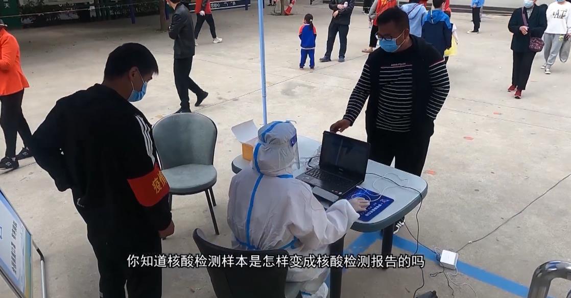 隨著“滴”一聲,標(biāo)本的信息就會(huì)錄入系統(tǒng),對(duì)接健康碼。
