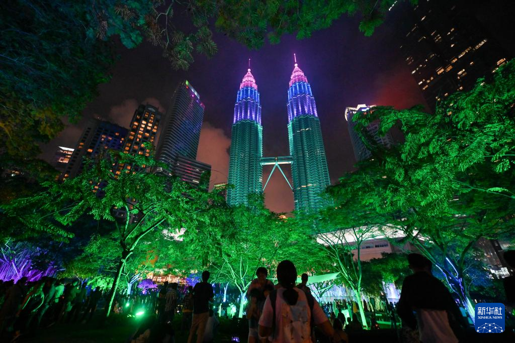 2024年1月1日凌晨,位于馬來西亞吉隆坡的馬來西亞國家石油公司雙塔上演燈光秀迎接新年。