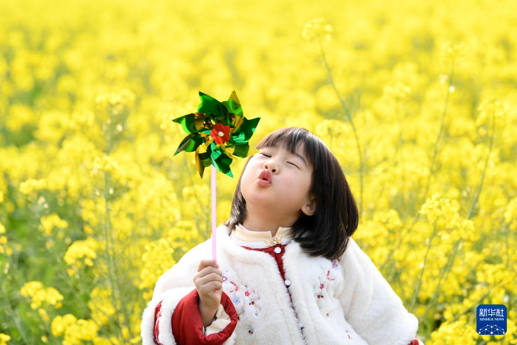 3月2日,一名小朋友在貴州省余慶縣白泥鎮(zhèn)滿溪村的油菜花田間玩耍。