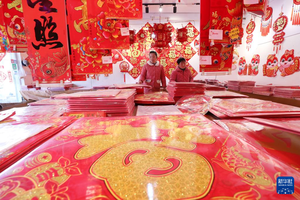 1月13日,顧客在河南省焦作市溫縣趙堡鎮(zhèn)年畫市場選購新年飾品。