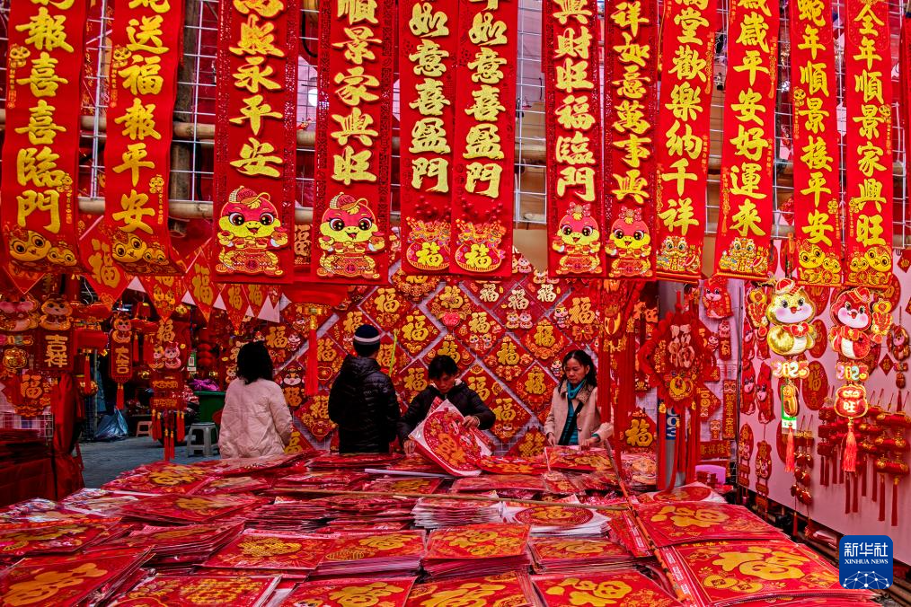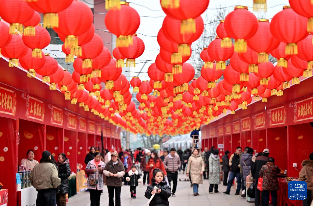 春節(jié)臨近,大街小巷張燈結彩,人們逛集市、購年貨,參加各種迎新年活動。