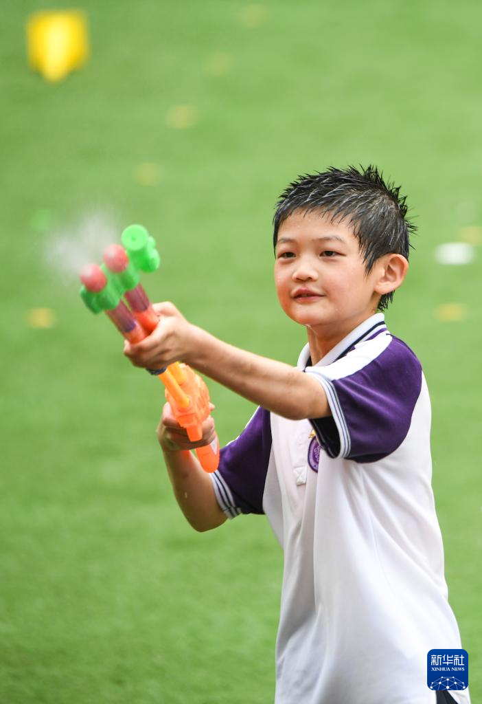 5月30日,重慶兩江新區(qū)巴蜀學(xué)校學(xué)生在“水趣童樂”活動(dòng)中玩水槍。
